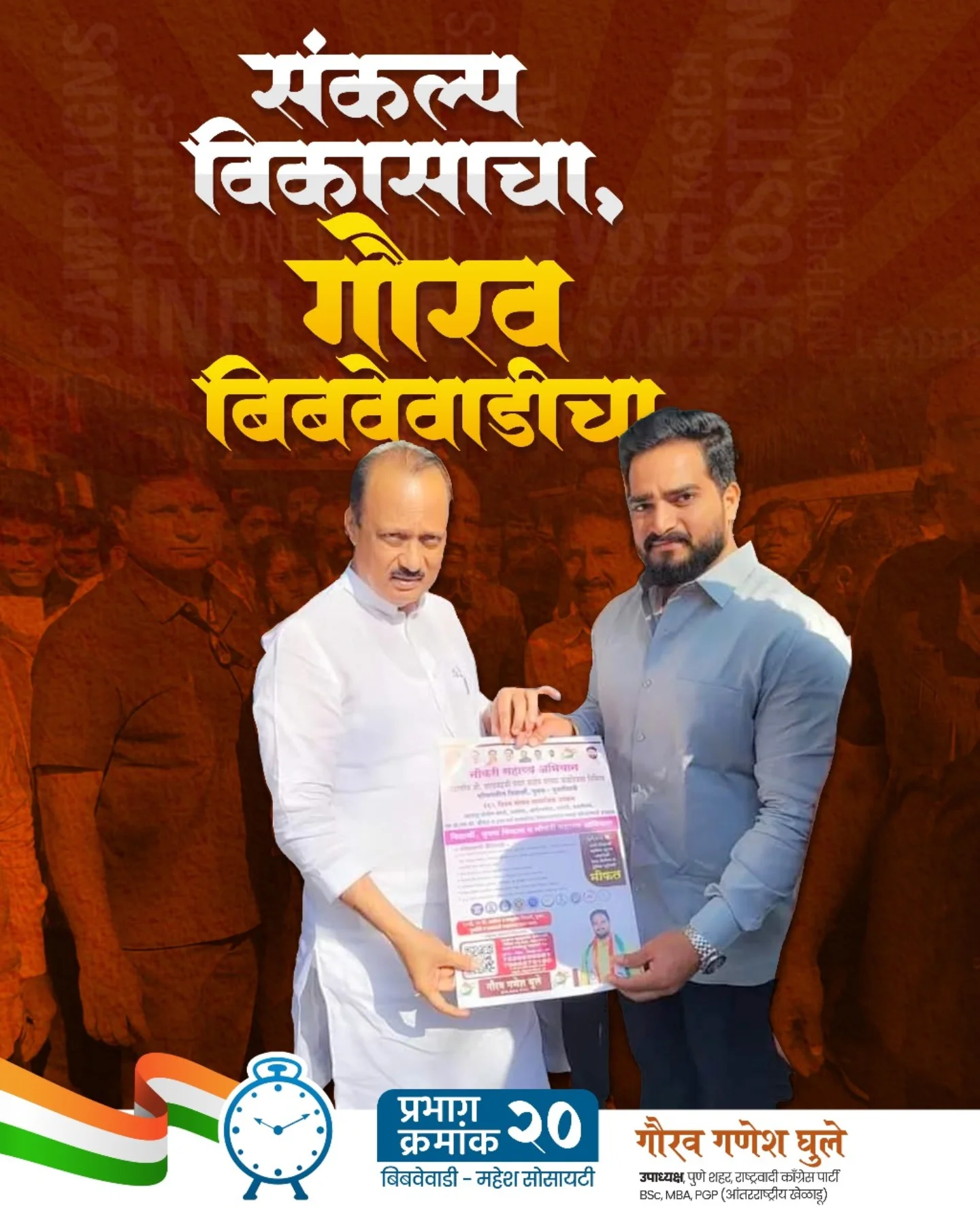 आपण दाखविलेल्या विश्वासाला न्याय देणे हीच माझी जबाबदारी आहे. बिबवेवाडीचा सर्वांगीण विकास करण्यासाठी आपले सहकार्य, मार्गदर्शन आणि आशीर्वादाची अपेक्षा आहे.
